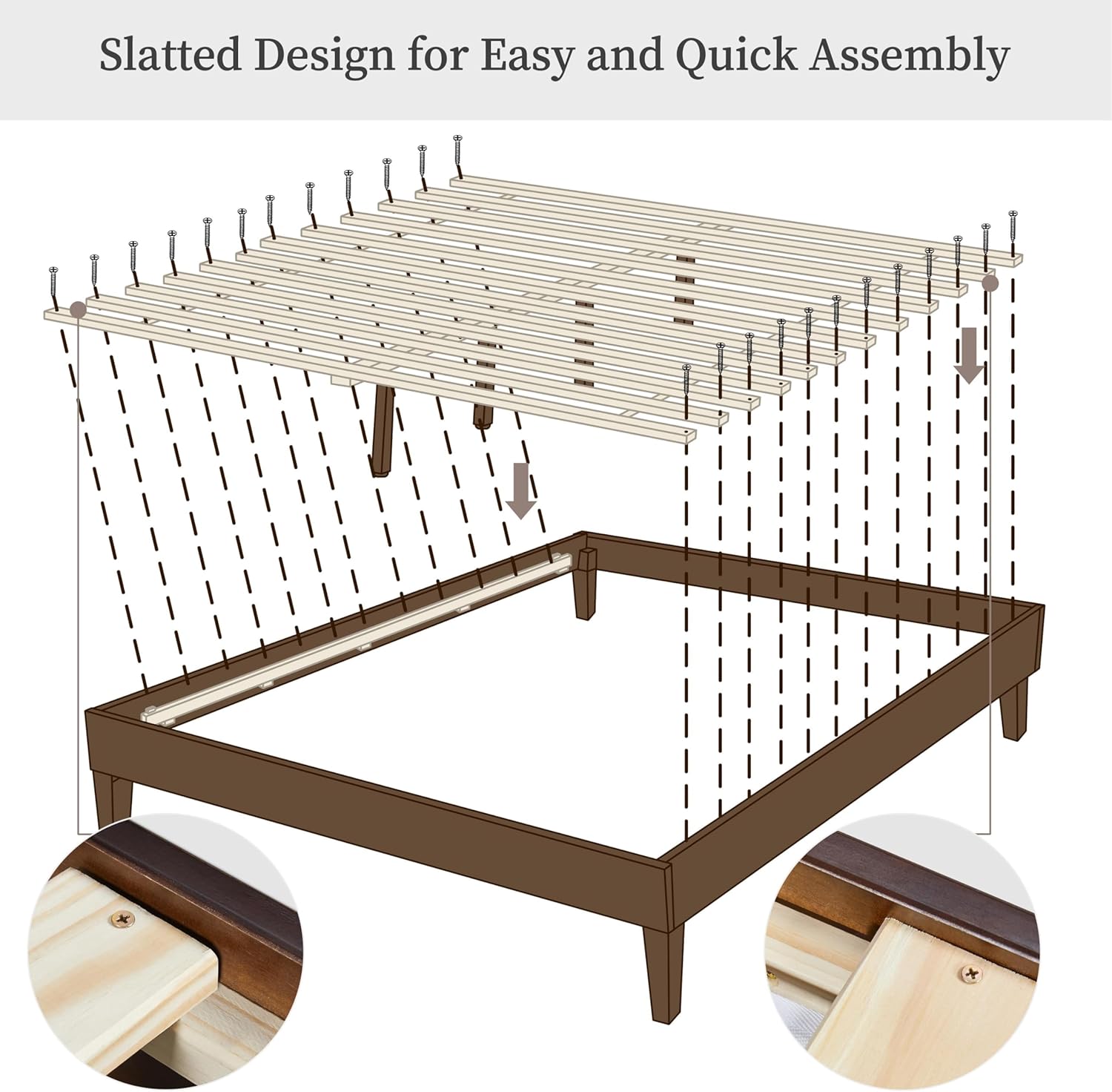 No Box Spring Needed: No bulky box spring or extra foundation is required. This wood platform frame with strong slats benefits in extending the life of your latex, memory foam, or spring mattress (mattress not included)