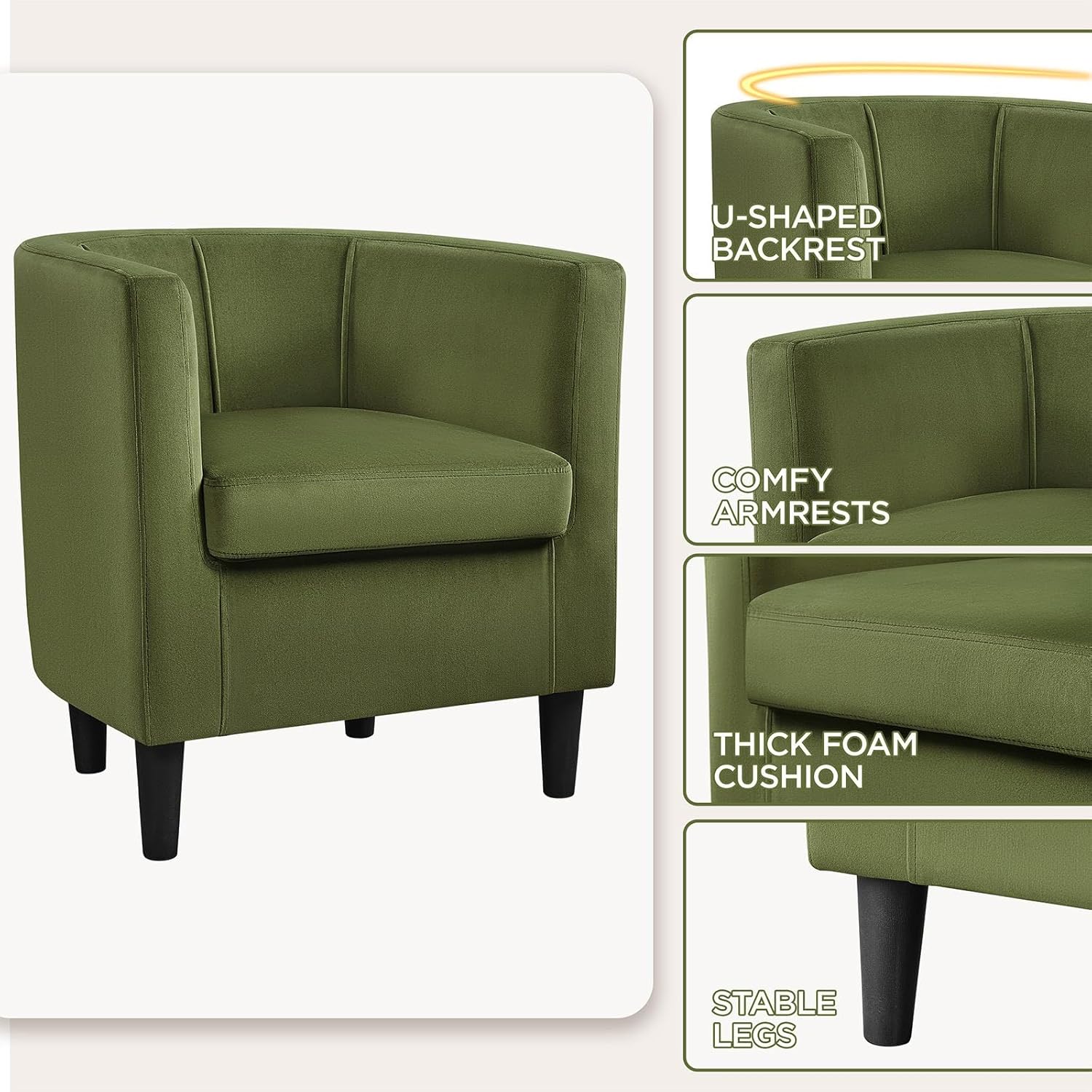 Yaheetech Velvet Accent Chair, Modern and Comfortable Armchairs, Upholstered Barrel Sofa Chair for Living Room Bedroom Waiting Room, Olive Green