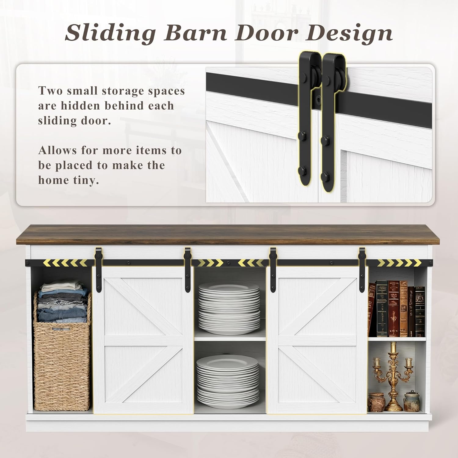 YESHOMY Farmhouse TV Stand for Televisions up to 65 Inches, Sliding Barn Doors and Storage Cabinets, Console Table and Media Furniture for Living Room, 58 Inch, Milk White