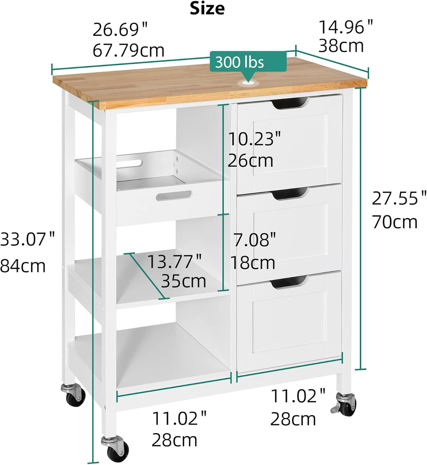 What’s the size of Portable Kitchen Island Cart?