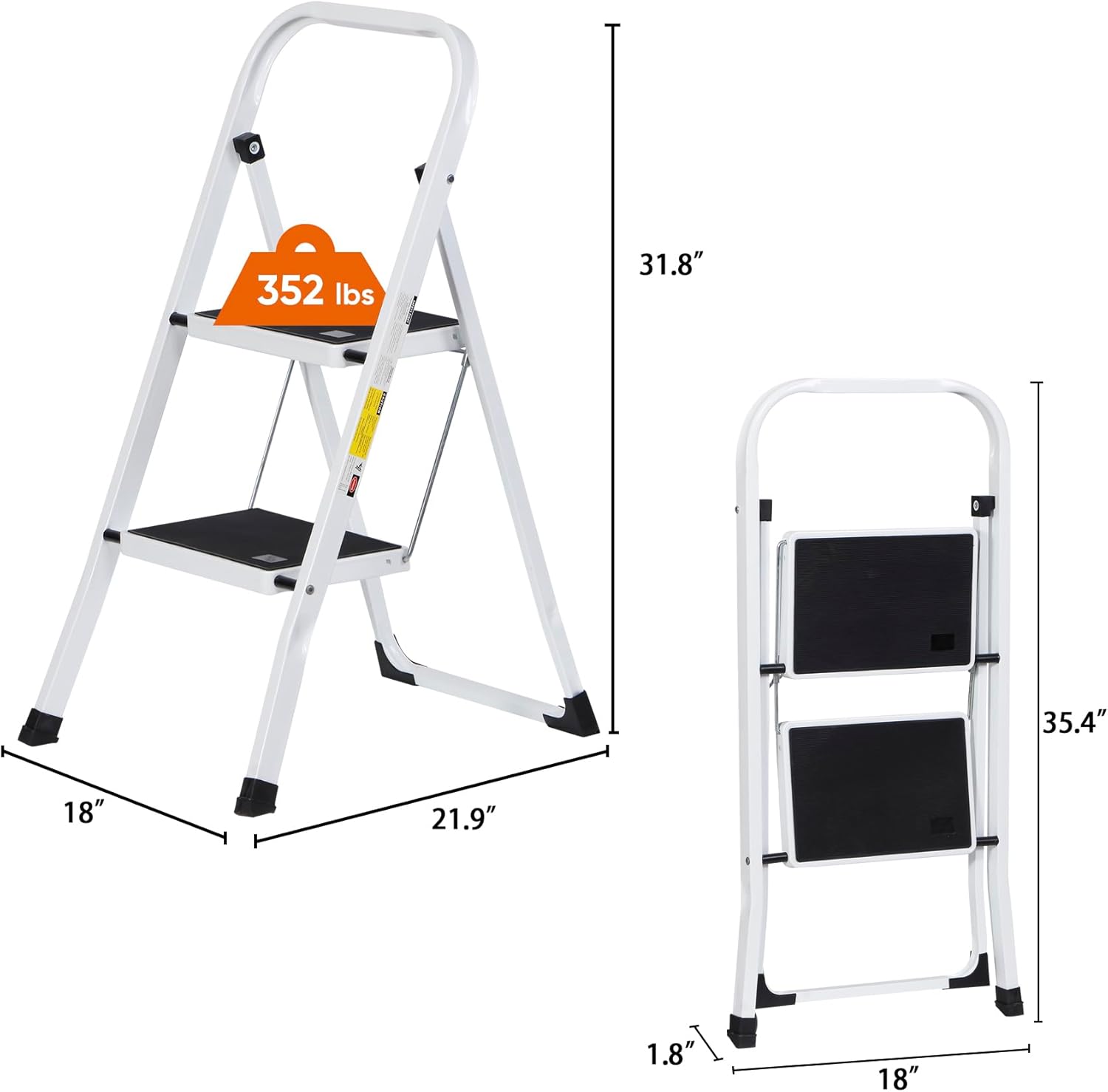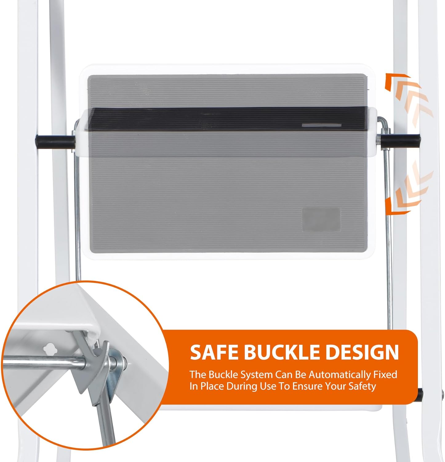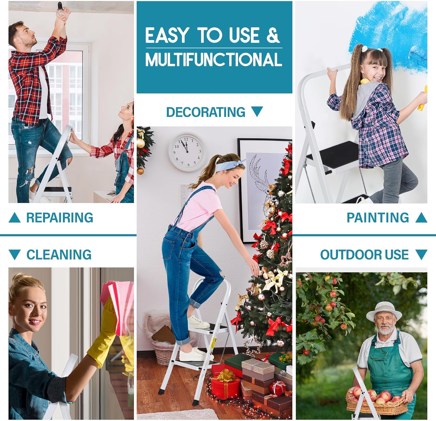 【Folding Design】- ZENY 2 step ladder is foldable and allows for convenient storage and transportation. The convenient handle makes the step stool is very easy to climb and carry