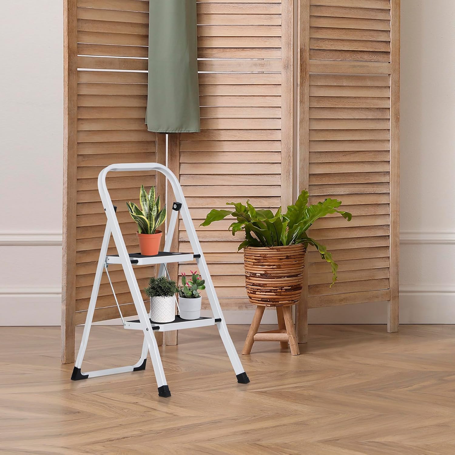 ZENY 2 Step Ladder Folding Step Stool with Wide Anti-Slip Pedal, Convenient Handgrip, Portable Steel Step Stool, Sturdy Steel Ladder for Household and Office