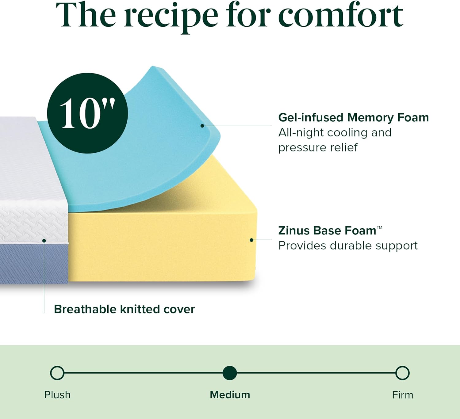 ![ZINUS 10 Inch Queen Cooling Essential Memory Foam Mattress [NewVersion], Fiberglass Free, Medium Feel, Breathable Cooling Layers, Certified Safe Materials ZINUS 10 Inch Queen Cooling Essential Memory Foam Mattress [NewVersion], Fiberglass Free, Medium Feel, Breathable Cooling Layers, Certified Safe Materials](https://m.media-amazon.com/images/I/81Nxcm4LX0L._AC_SL1500_.jpg)