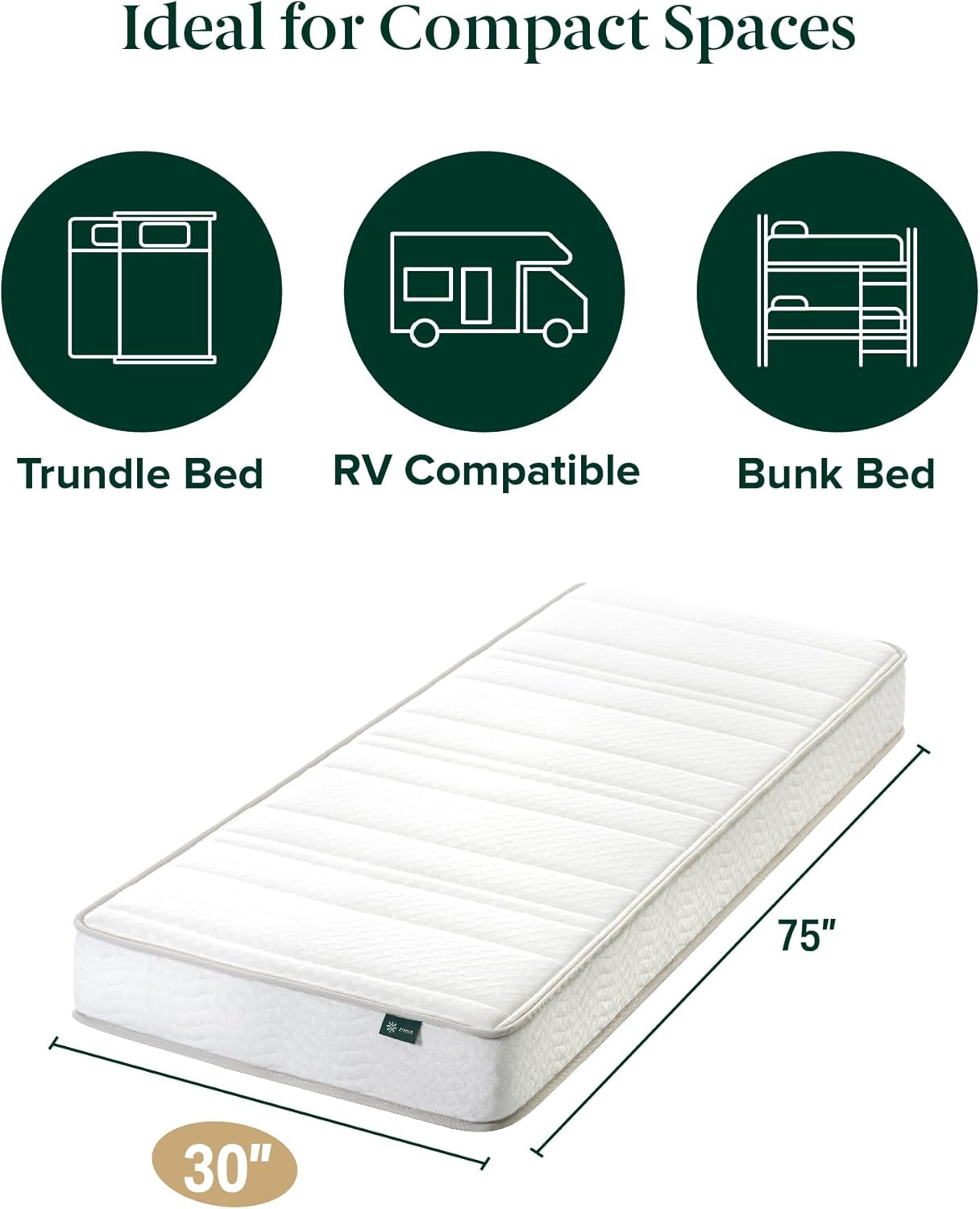 8 INCHES NARROWER THAN A REGULAR TWIN: Measuring 75”x30”, this narrow mattress is more compact than a regular twin mattress, making it an ideal choice for tight spaces, bunk, trundle, day beds, RVs, and more