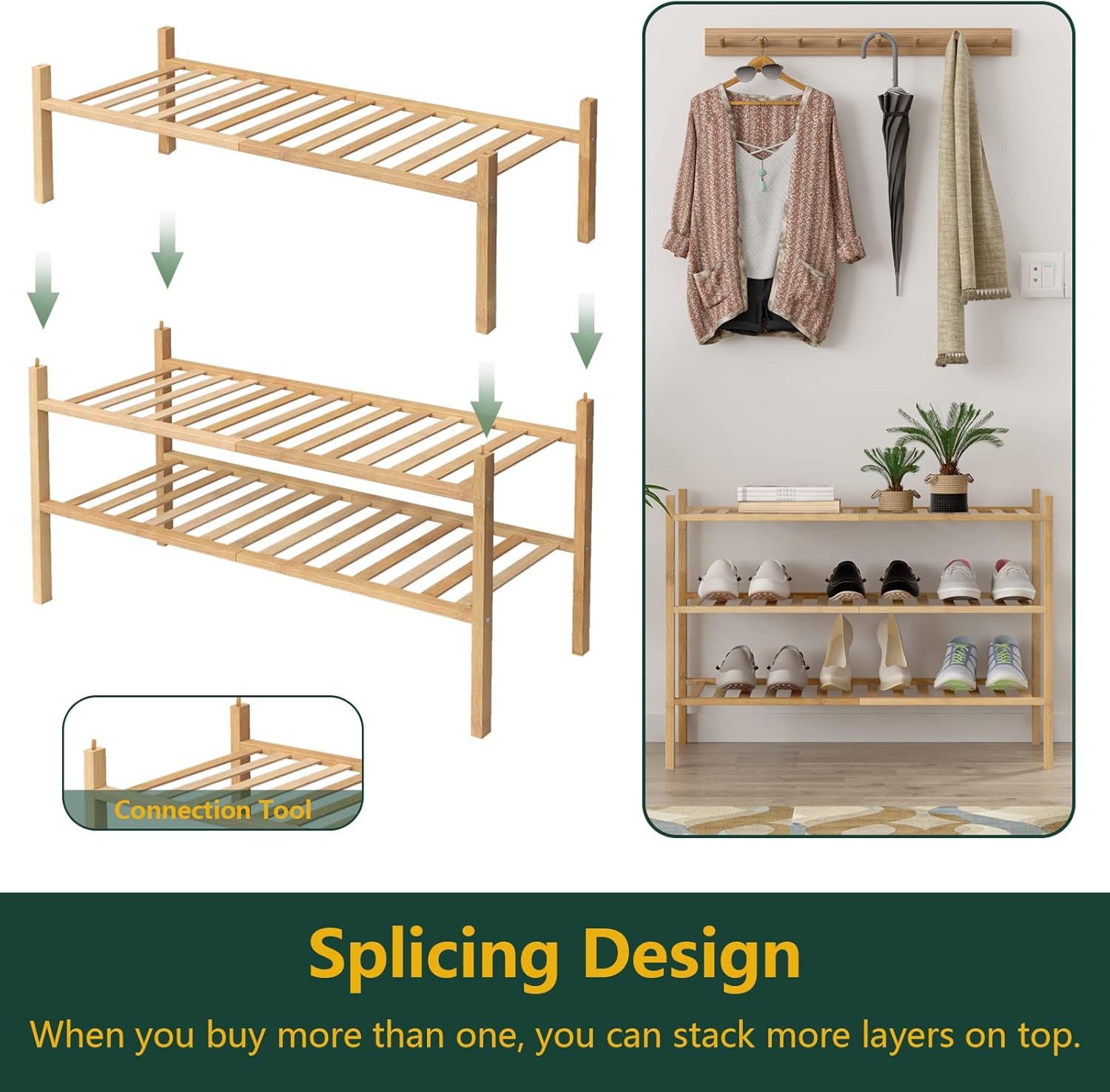 Z&L HOUSE 3-Tier Shoe Rack for Closet, Stackable Shoes Rack Organizer Free Standing Shoe Shelf for Entryway and Closet Hallway, Multifunctional Bamboo Rack in Different Combinations (3-Tier)